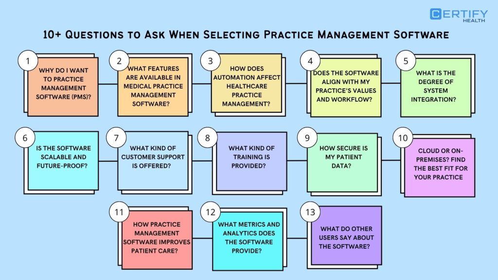 These 10+ questions to ask provide a framework for making an informed choice that aligns with your practice’s unique needs, values, and goals. Remember, the most expensive system isn’t necessarily the best, and the most popular choice might not be right for your specific situation.