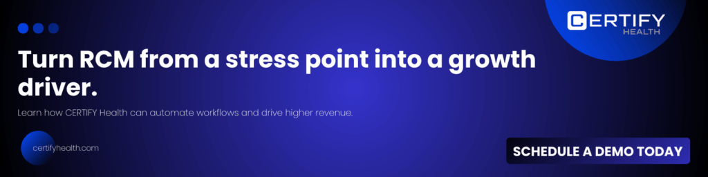 CERTIFY Health’s unified healthcare platform makes this shift possible by streamlining RCM workflows, improving financial transparency, and helping practices build high-performing teams without burning out staff or frustrating patients.