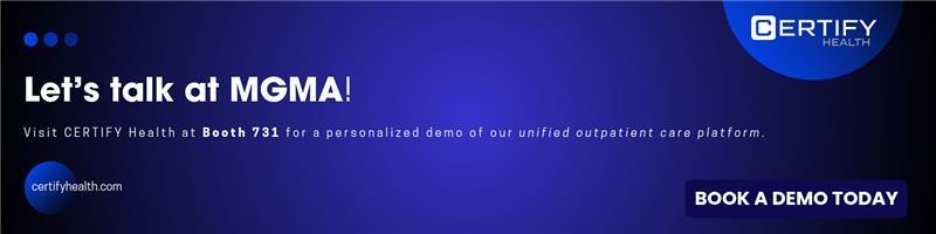 Also, check out how CERTIFY Health is partnering with MGMA to showcase smarter workflows, streamlined patient engagement, and practice growth solutions.