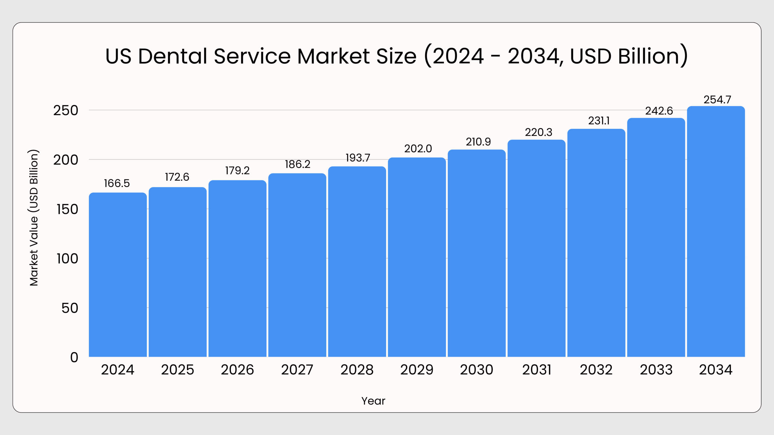 - U.S. Dental Services Market (2025): ~$172.6–$184.6B