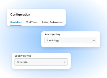 Configurable for specialties, visit types, and patient preferences.