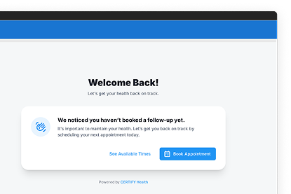 See how CERTIFY Health’s automated appointment reminders can reduce administrative burden, free up your staff, and protect your practice’s revenue. Schedule a personalized demo today to discover a smarter way to manage patient communication.