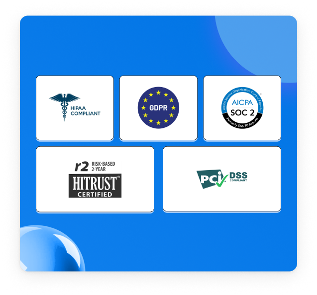 HIPAA, HITRUST r2, SOC 2, GDPR.