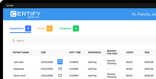 Empower patients to book online without losing control. CERTIFY Health’s Self-Scheduling Rules Engine enforces your custom scheduling policies—who can book, what they can book, and when—so your calendar always stays optimized.
