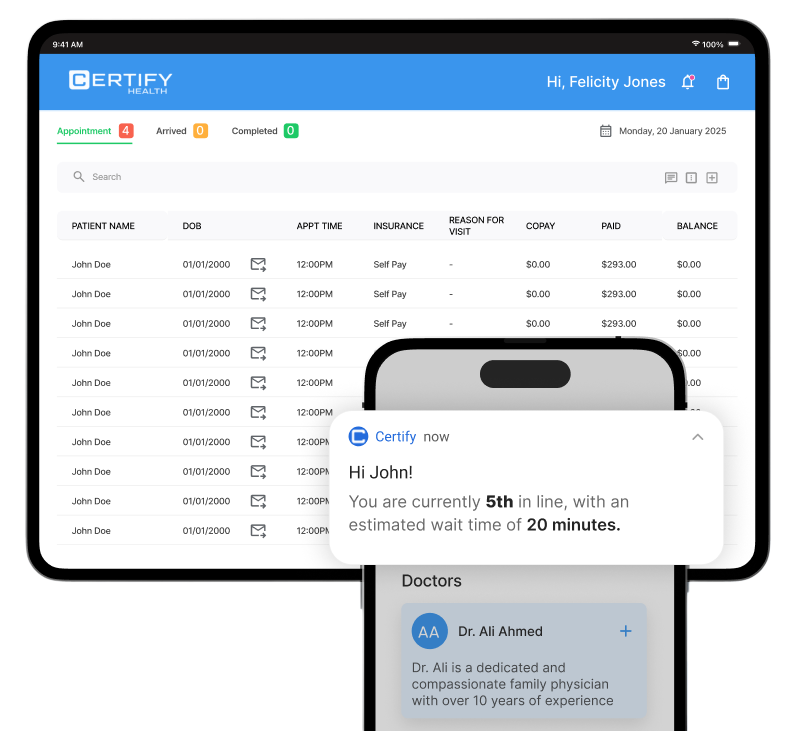 CERTIFY Health’s digital patient intake solution is designed for seamless integration with existing EHR and EMR systems, allowing healthcare facilities to eliminate paper-based forms. Unlike many platforms, it offers self-service kiosks, mobile-friendly intake options, and real-time insurance verification, enabling practices to reduce no-shows, improve data accuracy, and enhance the overall patient experience.